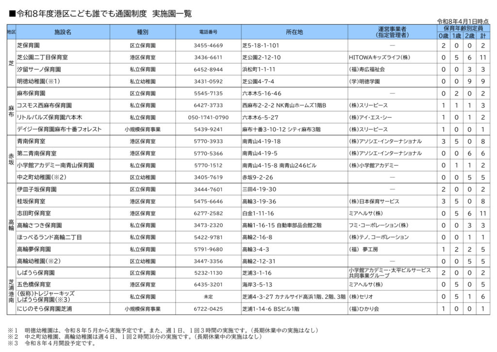 2026年(令和8年)4月から、港区独自の 「こども誰でも通園制度」 がスタートします。