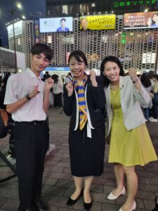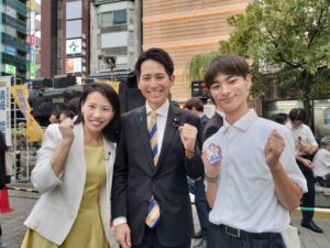 本日は、参議院選挙にて当選された参議院議員の方や玉木代表を含む街頭演説会を新橋駅SL広場🚂にて行われました。(もちろんこれにもインターンの学生さんが同行しています。)